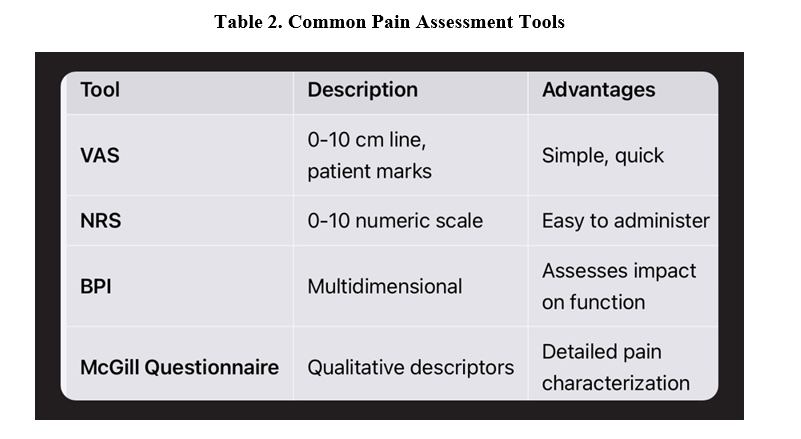 Table 2. Common Pain Assessment Tools