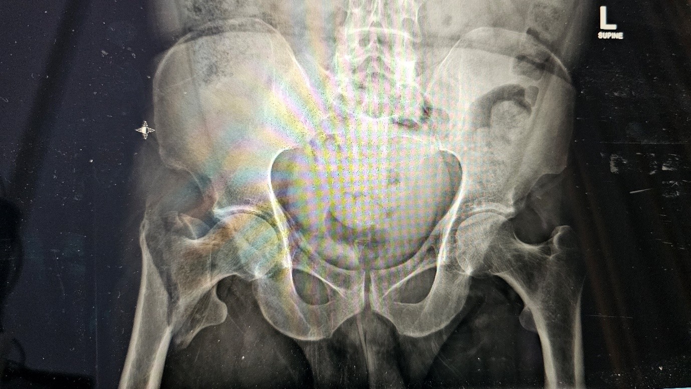 The patient, a 75-year-old female, presented to the emergency department following a fall at home. Radiographic evaluation revealed a comminuted intertrochanteric femur fracture on the right side. The patient was admitted for surgical management after appropriate medical and anesthetic clearance.