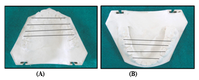 Figure 4: (A) & (B) Shows archwidth measurement in maxillary and mandibular arch respectively