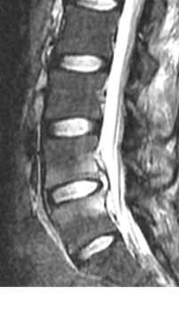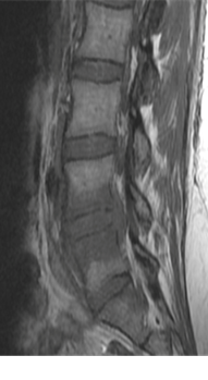 Fig 6: T1 MRI – L3/4 spondylodiscitis