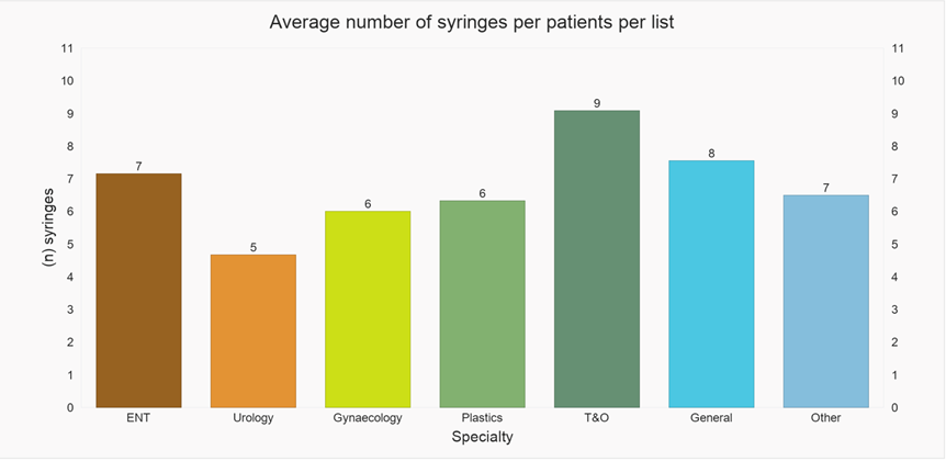For each list, the total number of syringes and glove pairs used was recorded. Extrapolation was conducted to estimate yearly usage, based on the frequency of elective surgical lists across the two hospitals. Anecdotal notes were collected where syringe reuse occurred within safe clinical boundaries (e.g., using the same drug for a single patient).