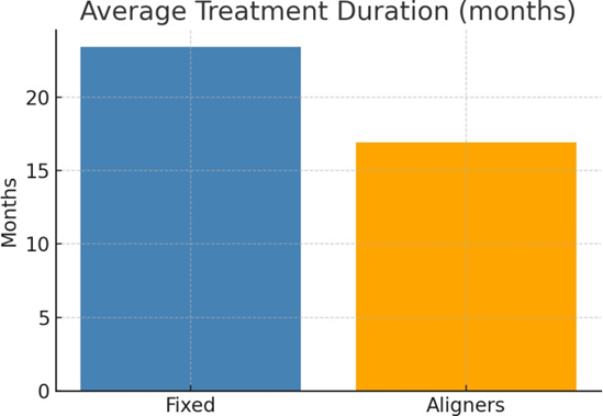 Figure 1. Treatment Duration Comparison Between Fixed and Aligners (Borda et. Al.)