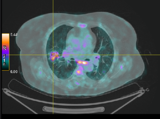 A post-chemotherapy PET scan showed the disappearance of the pulmonary lesion and the persistence of lymphadenopathies that were of sarcoidosis origin.