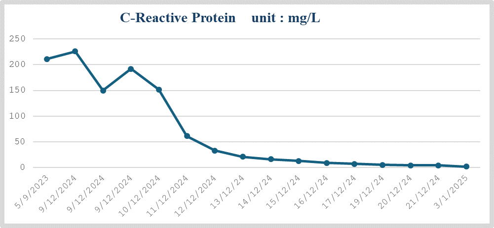 Graph No. 2: shows the CRP levels throughout the hospital stay.