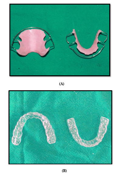 Figure 1 - (A) Hawley retainer; (B) Vacuum- formed retainer