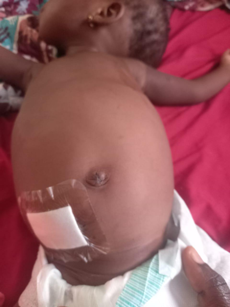 On post operative day 4, the mother complained that the child had been vomiting. Vomiting was however non-bilous. She was counselled to observe the vomiting and report back to hospital if it persisted. On post operative day 5, mother complained that the child had been irritable, crying a lot and had 3 episodes of non-bilious vomiting.