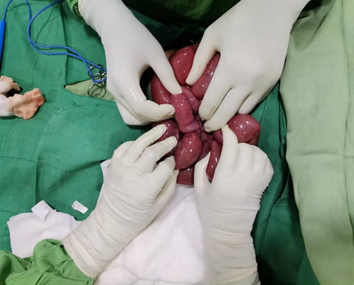 Figure 2 : showing ileoileal intussusception on laparotomy
