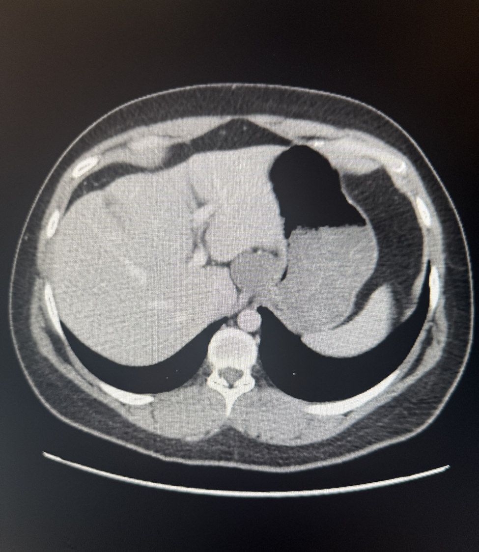 Figure 1. CT scan showing the lesion adjacent to the GE junction