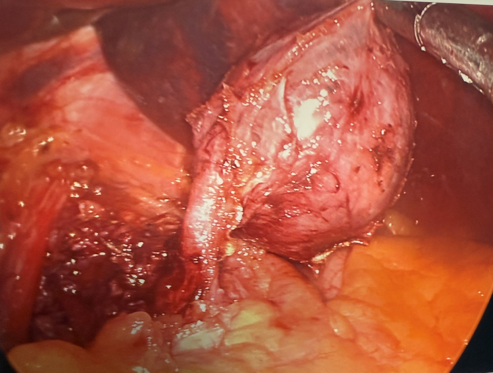 Figure 3. Laparoscopic removal of the esophageal duplication cyst