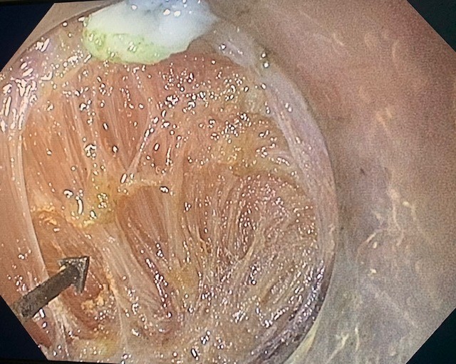 The patient remained in the hospital overnight for monitoring and received a gastrografin swallow study the following day that showed no leak was present (Figure 7). She was discharged one day following her Z-POEM procedure and advised to continue a liquid diet for three days and a soft diet until her outpatient follow-up visit in 4 weeks. A month later, in the outpatient clinic the patient reported improved dysphagia with minimal discomfort. It was recommended for the patient to trial foods prior to her next visit that she has historically avoided due to her dysphagia. She is able to eat a normal diet currently without any pain or discomfort and she has been very pleased with the outcome of her procedure thus far.