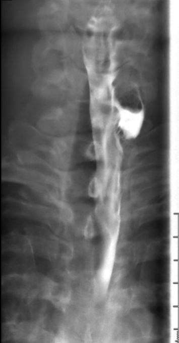 A 60-year-old female was referred to gastroenterology for over 20 years of intermittent, solid food dysphagia, regurgitation, and odynophagia on omeprazole and famotidine which offered minimal improvement of dysphagia. She had an esophagogastroduodenoscopy (EGD) done at another institution which showed a Schatzki’s ring, benign gastric polyps, a Hill grade 3 hiatal hernia, mild gastritis, and a negative work up for H. pylori. Multiple esophageal dilations were performed in the past with minimal improvement in symptoms. She was referred to gastroenterology since her pharyngoesophageal dysphagia was getting progressively worse and was refractory to other treatment modalities.