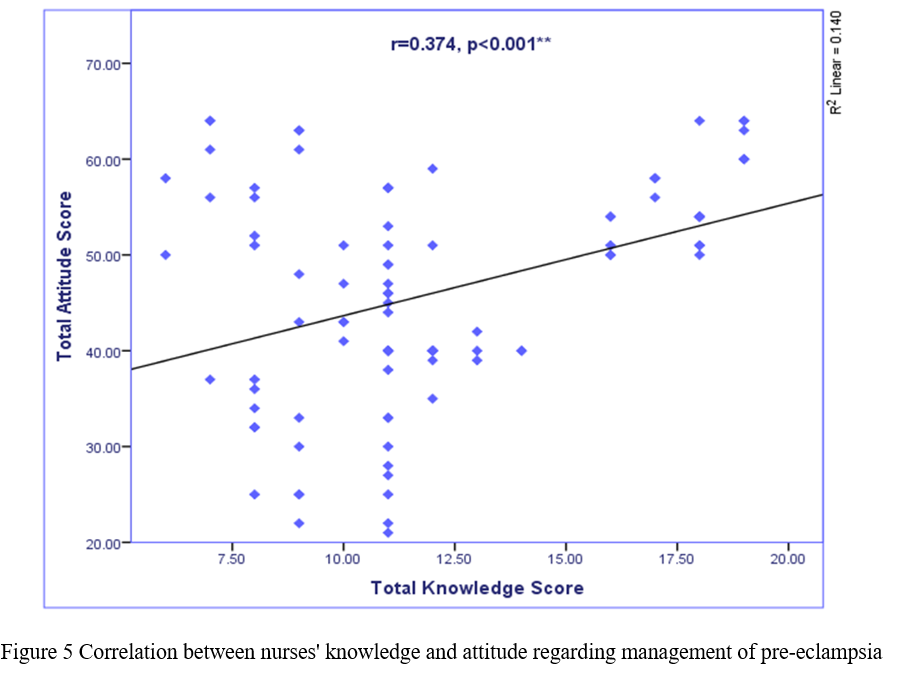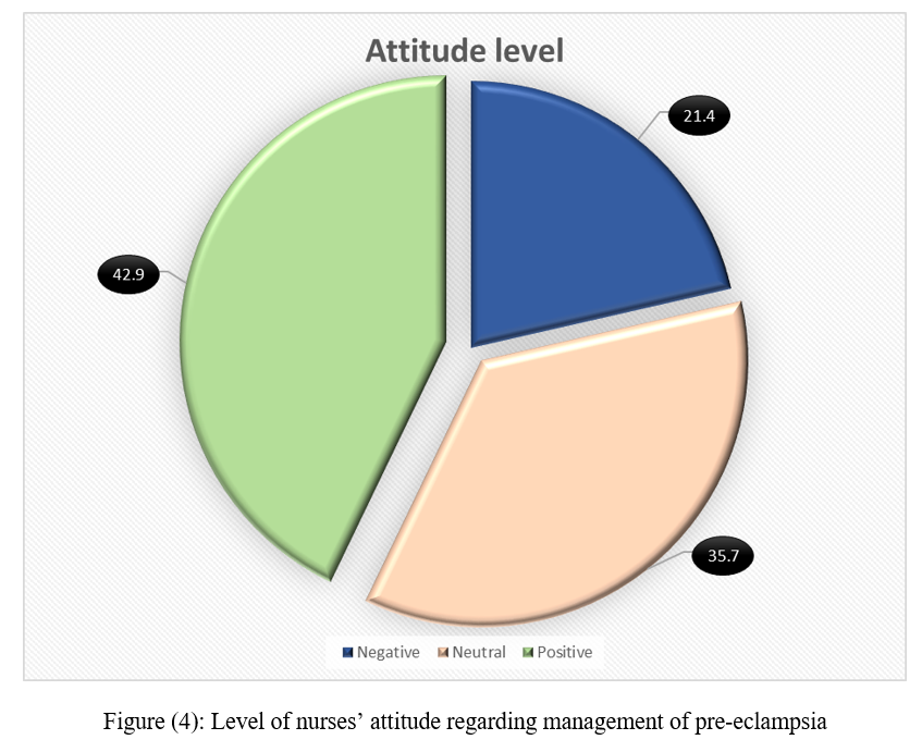 Data were presented as tables and figures presenting nurses' knowledge and attitude regarding management of pre-eclampsia.