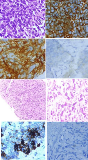 A total of 14 patients with histologically confirmed NEC were available. There were 11 males and 3 females. Out of 11 males, nine had prostatic NEC, one each had adrenal and urachal NEC. Among females (n-3), one each had ovarian, cervix and endometrial NEC. The median age was 70 years (range 59-80 years). The relevant imaging and histopathological images are presented in Fig 1 and Fig 2 respectively. The summary of patient characteristics, their treatment and outcome are summarised in Table 1.