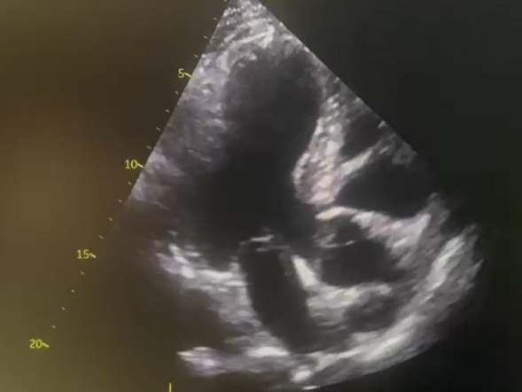 Day 5: A transthoracic echo revealed abnormalities, including an aneurysmal basal posterolateral segment, basal-mid posterior and lateral akinesis, focal basal inferior akinesis, and severe apical infero-septal hypokinesis. The left ventricular ejection fraction was reduced to 35%.