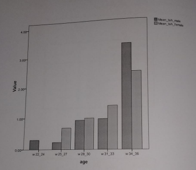 2.TSH level and gestational age: There is also a clear increase in TSH with increasing gestational age. It is very low in premature infants at about 25-27 weeks of age, and it increases about 6 times in premature infants between 34-36 weeks of gestation. In comparison with the Japanese study, we found that preterm infants at about 25 weeks of gestation had the equivalent of 20% of the TSH level of preterm infants between 34-36 weeks. The P value for this study was equal to zero, and the reason for this decrease is the immaturity of the hypothalamic-pituitary-thyroid axis, and this maturation occurs after week 34.