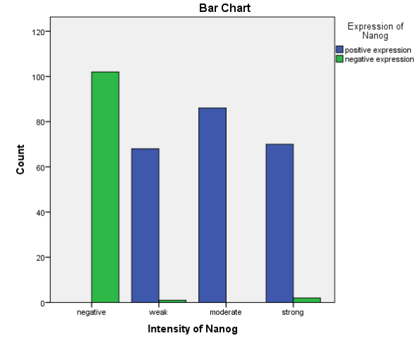 The expression of Nanog was interpreted by nuclear staining in neoplastic cells. This is further scored for intensity and proportion. This interpretation was done by two pathologists at different times to ensure uniformity in results and to remove any bias.