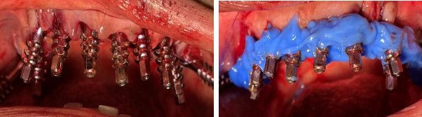 Surgery was done in one session under local anesthesia, teeth in the maxilla and mandible were extracted and implants were placed.