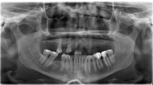 Figure 1 shows the panoramic radiograph and clinical photo at presentation.