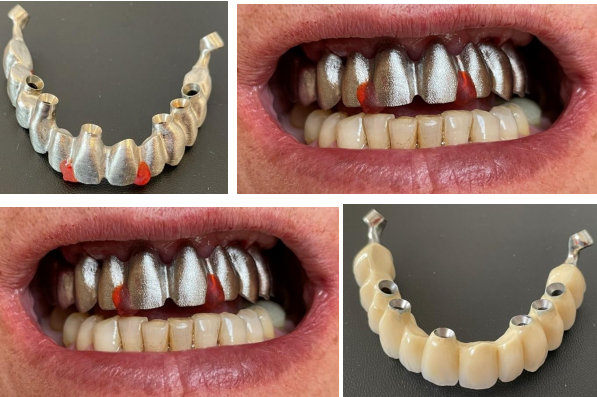 Figure 4: Laboratory steps: frame try-in and metal-ceramic bridge