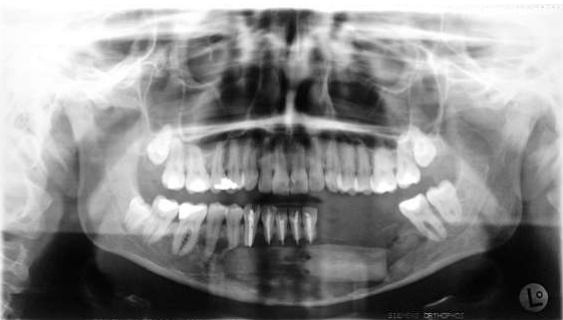 Fig 4: Oktober 1994: augmentation both sides of the lower jaw with iliac crest bone