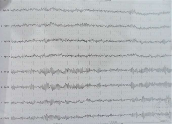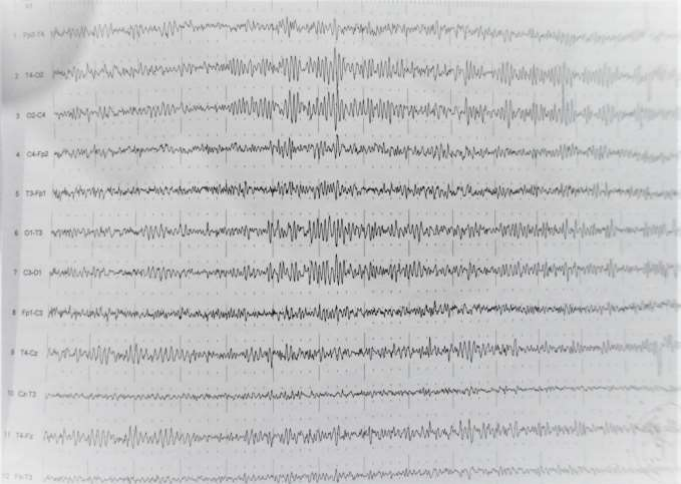 Despite this, because the diagnosis of this disease was important to us, we decided to take a E.E.G, which we did, and to our surprise, we found out that the case was a Grand Mal epilepsy case, which presented itself in this way. The figure showed.