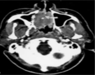 (1) Two 3.5yr old males with unexpected EMP followig adenoidectomy for chronicrihnosinusitis. (2) A 12yr old female who presented with progressive hoarseness and was subsequently found to have EMP coexisting with localized involving the larynx(10) and (3) A 11yr old male who presented with an EMP of orbit(11). (4) In present patient the tumor was localized in the nasopharynx.There was no involvement of bony structure or bone marrow and the diagnosis of solitary EMP of nasopharynx was confirmed. The etiology of this disease remains unkown; but factors such as viral (EBV) pathogensis and chronic irritation from inhaled irritants have been previously indicated(12-14) Despite the typical presentation as a locally destructive tumor, plasmacytomas are highly radiosensitive; 70-80% survival may be obtained with the use of radiotherapy.Radiotherapy remains the main stay for management of EMP.