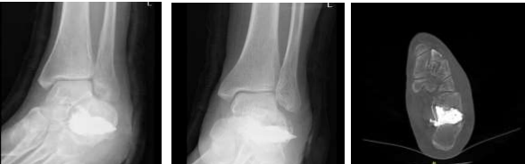 18.Bano A, Pasku D, Karantanas A, Alpantaki K, Souvatzis X, Katonis P. Intra-articular calcaneal fracture: closed reduction and balloon-assisted augmentation with calcium phosphate cement: a case report. Cases J. 2009 Dec 9;2:9290. doi: 10.1186/1757-1626-2-9290. PMID: 20062614; PMCID: PMC2803954.
