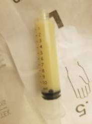 Fig 2: color of the aspirated subdural purulent material