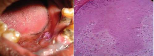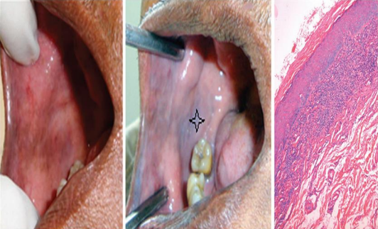 It is associated by false positive reaction with small aphthous-like ulcerated lesion that might not routinely be biopsied turned opaque white after the application of acetic acid and the histopathologic result was moderate epithelial dysplasia .