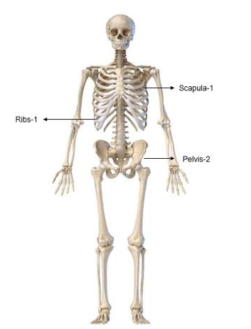 31 cases of fibromatosis were found in our database, which has data on over 10,000 patients, including those with benign bone tumours. Of these patients, 4 had desmoplastic fibroma of the bone, meaning that the incidence of fibromatosis in our population was 0.04%. Out of which three (75%) were men and one (25%) was a woman. The average age was 29.25 years (range: 21–35 years old). The skeletal distribution was one scapula, two pelvises, and one chest wall- rib. Fig-1.