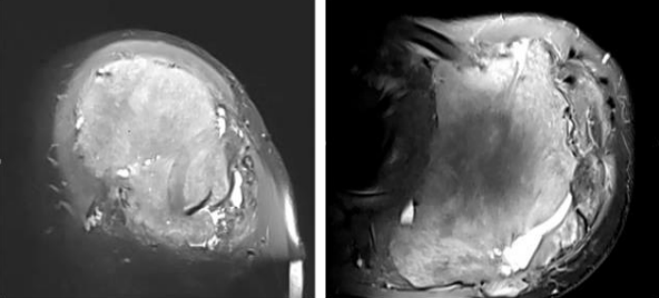 Correct diagnosis is crucial since, both radiologically and histologically, the lesion might be misdiagnosed as a benign fibrous lesion that is indolent or as a more aggressive spindle-cell sarcoma, with very different treatment options (6). It has been noted that relatively significant recurrence rates occur after basic curettage (9). Wide margin surgical excision is the recommended method of treatment since it has been demonstrated to have the lowest recurrence rates. Large tumours appear to be unsuitable for wide resection and reconstruction because they present a significant reconstructive difficulty. Furthermore, the reconstruction alternatives that are accessible either permanently limit function (e.g., arthrodesis and rotationplasty) or are incredibly expensive (e.g., allograft reconstruction and mega prostheses). These are at many times not acceptable to the patient.