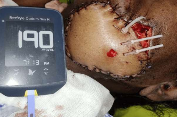 Post-operative blood glucose measurement were regularly performed on 60 head and neck free flap transfers (38 males and 22 females). The flaps were 18 free fibula osteo-cutaneous flaps, 20 radial forearm free flaps, 14 anterolateral thigh flaps and 8 lateral arm flaps. Skin punctures and blood glucose measurements were made using freestyle Optium Neo H glucometer which are commonly used by diabetic patients.