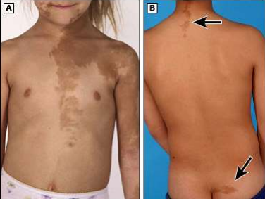 NCP represent a complex group of inborn conditions associated with a wide range of multiorgan congenital diseases determined by an aberration in growth, migration, and differentiation of NC cells. NC is a transient, multipotent cell population that generates a broad spectrum of numerous cell types, including melanocytes of the skin and hair follicles, neurons, and glial cells. As a result, patients with NCP develop an extensive range of multisystem abnormalities such as skin and hair pigmentation defects, neurological and ocular disorders. Among NCP, Hirschsprung, DiGeorge, Treacher-Collins, CHARGE, Axenfeld-Rieger, and Goldenhar syndromes are mainly featured by cardiac, auditory, eye, neurological, urinary, craniofacial defects, and/or missing enteric ganglia.WS, OCA, TS and PBT represent a subgroup of NCP, termed APDs. All APDs are clinically characterized by inborn skin and hair pigmentary anomalies. They can also be associated with a wide and heterogeneous spectrum of auditory, neurological, and ocular disorders. Precisely, SNHL is a very common feature in WS and TS patients; conversely, it has been described more rarely in PBT and OCA subjects. synthesizes the clinical and genetic findings of all known neural crest–associated diseases characterized by hypopigmentary congenital disorders. (4).as you noticed here in the last paragraphs that were talking about something near to our case but the difference here is the hypopigmentation element associating the cases mentioned not the hyperpigmentation one we have here.