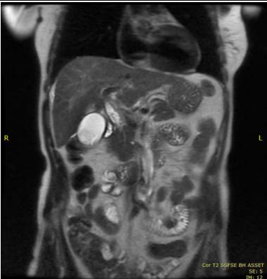 Image 1: MRCP demonstrated 2 gallstones within the neck of gallbladder with CBD tapers down towards the duodenal papilla.