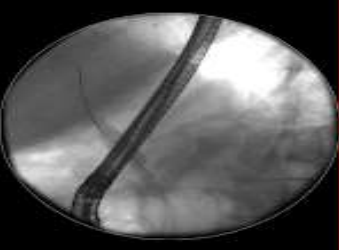 Image 2: thready intrahepatic ducts demonstrated during ERCP stent insertion