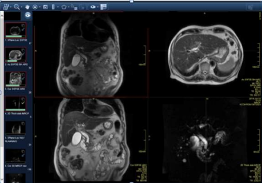 A magnetic resonance chloangiopancreatography (MRCP) demonstrated a dilated CBD of 15mm diameter with 13mm filling defect indicating obstructive gallstones. Intrahepatic ducts showed biliary strictures, which may suggest primary sclerosing cholangitis (PSC), and irregular liver contours indicating chronic liver disease. A fibroscan result was 14kPA, consistent with liver cirrhosis. An endoscopic retrograde cholangiopancreatography (ERCP) with sphincterotomy and stenting was performed for removal of the gallstones. It also demonstrated a normal appearance of the biliary ducts with no suspicious areas hence biopsies were not performed. A second ERCP followed for stent and further gallstone removal. Unfortunately the patient’s symptoms did not improve. A subsequent abdominal USS demonstrated a persistently dilated CBD, unchanged in appearance from the previous scans.