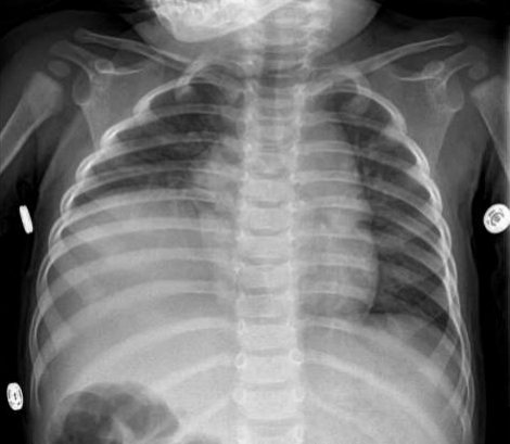 A paediatrics surgery consultation done, and the patient seen by paediatrics surgeon after five months and diaphragmatic repair done for the patient (Figure 5) with a subsequent clinical and radiological follow up which showed a significant ‘’CXR’’ findings improvement (Figure 6) with complete absence of the hiccup in the out-patient follow up with my clinic (Figure 7).