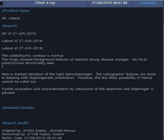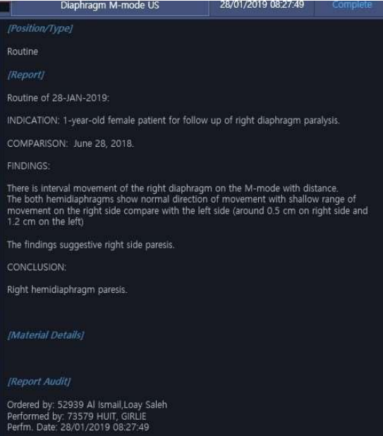 Figure 3: The radiology report of the diaphragm M-mode ultrasound