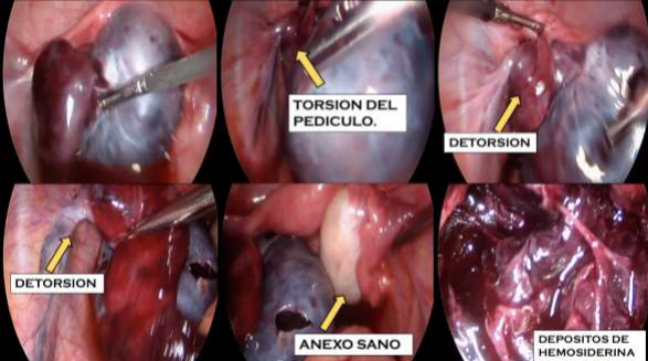 Adnexal torsion is a rare pathology, known as one of the few gynecological emergencies, in which the surgeon's expertise and skill are required to preserve the ovary. Many years ago it was thought that adnexal torsion was the same as salpingo-ophorectomy due to the risk of pulmonary embolism that could occur in these patients. However, studies showed that the incidence of this pathology is very low, 0.2%, so at the same time Eliminate this myth: detorsion began its rise as a conservative treatment.