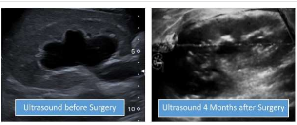 Patient came to me with his parents 4 months post-surgery for Follow up. He is in very good condition. They informed me that since the operation, the boy has stopped complaining about abdominal pain and vomiting. Now he can eat everything without to think about pain or Nausea. After surgery he has gained 6 kilograms. I performed Ultrasound of right Kidney which showed normal situation with no more Hydronephrosis.