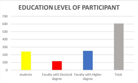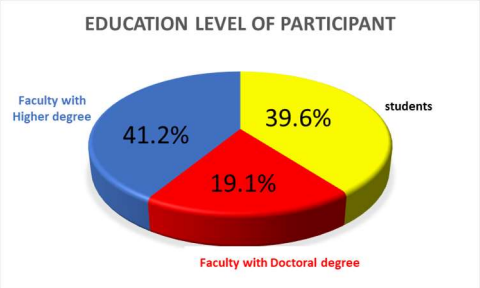 Among 505 study participants 39% were between 18 – 30 years and 61% were within 31 to 50 years of age (Figure 2). Proportion of women based on educational status, 39.6% students, 41.2% faculties with higher degree and 19.1% faculties with doctorate were participated and included in this study (Figure 3).