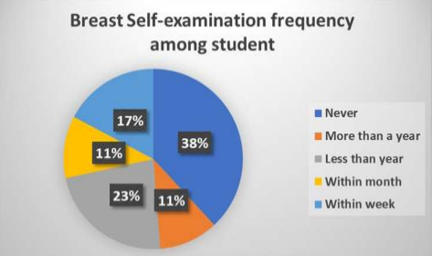Results: It was observed that most of the participants were not aware about the importance of monthly breast self-examination and early signs and changes in shape and color of the nipple. Based on the questionnaires, it was noted that many of the participants irrespective of the professional qualifications did not have any knowledge about the self-screening method which is the easiest way to identify early signs of breast cancer. The webinar provided an opportunity to the participants to self-screen themselves after the session. Among the study participants 39% were of less than 30 years and 61% were above 30 years of age. We observed maximum percentage of individuals in students 38%, faculty with higher degree 28% and faculty with doctorate 34% never undergone self-examination of breast before this awareness session. Others failed to do subsequent breast self- examination. Nearly 5 members with age above 30 years have reported unusual changes and abnormalities in the breast.