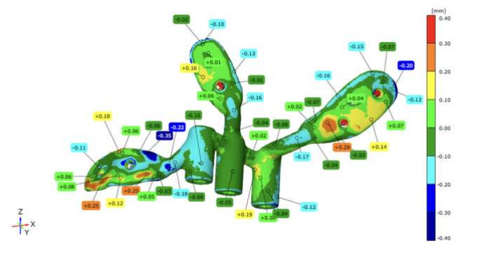 allowable limit. GOM analysis was used for surface analysis and deviation making sure the maximum deviation being within the acceptable limit. The treatment algorithm presented here provides a predictable reconstruction, even after extended maxillary ablation, without time-consuming bone augmentation. 3D CAD-CAM technology has made it possible to plan virtual surgery together with implant designing enabling digital simulation and precise planning of surgery. Overall, it shortens operation time, speeds up the recovery and improves patient outcome [4,5].
