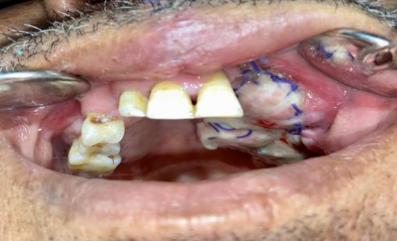 A 55-year-old man was referred to the Department of Prosthodontics with complaints of hypernasal speech, nasal regurgitation, and oroantral communication. He had undergone post Mucormycosis partial maxillectomy (Left Maxilla) and had not received any prosthetic rehabilitation (Figure 1). The patient presented with oroantral communication and difficulty in speech and mastication.