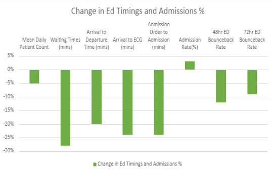 Figure 2: Shows percentage change in the Emergency Department timings. Using data from HIVE ED Metric