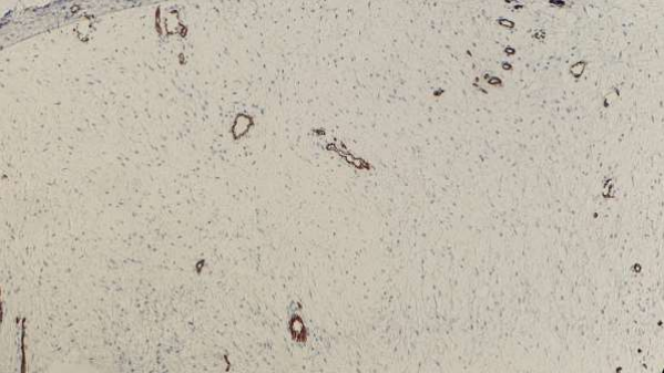 Histopathology findings showed a well-circscribed neoplasm composed of interlacing and intersecting fascicles of bland smooth muscle cells. Few thick-walled blood vessels were visible, and mitoses were absent. No evidence of atypia or malignancy was found in the sec-tions studied.