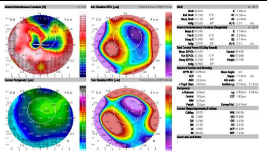 Figure 1: Pre- ICRS implant corneal topography