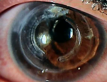 Patient and Clinical Findings: Female patient 34- year - old female with a history of penetrating keratoplasty, to whom a intrastromal corneal ring segments was performed further cataract surgery.