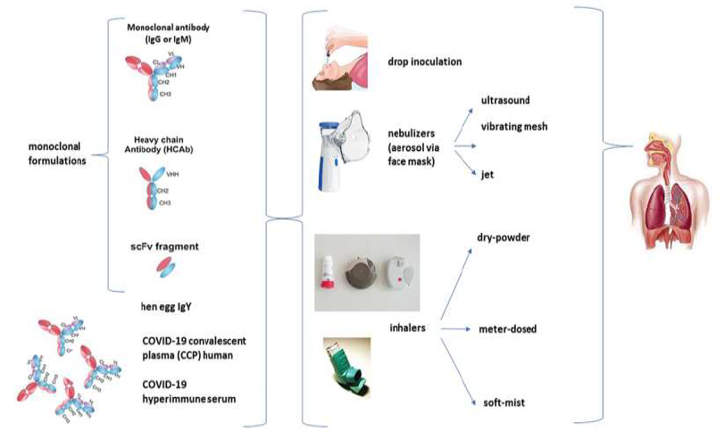 Figure 2 : Demonstrating potential therapeutic approaches for respiratory delivery of passive immunotherapeutics against SARS-CoV-2 (COVID-19) [8].