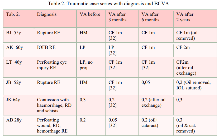 Table.2. Traumatic case series with diagnosis and BCVA